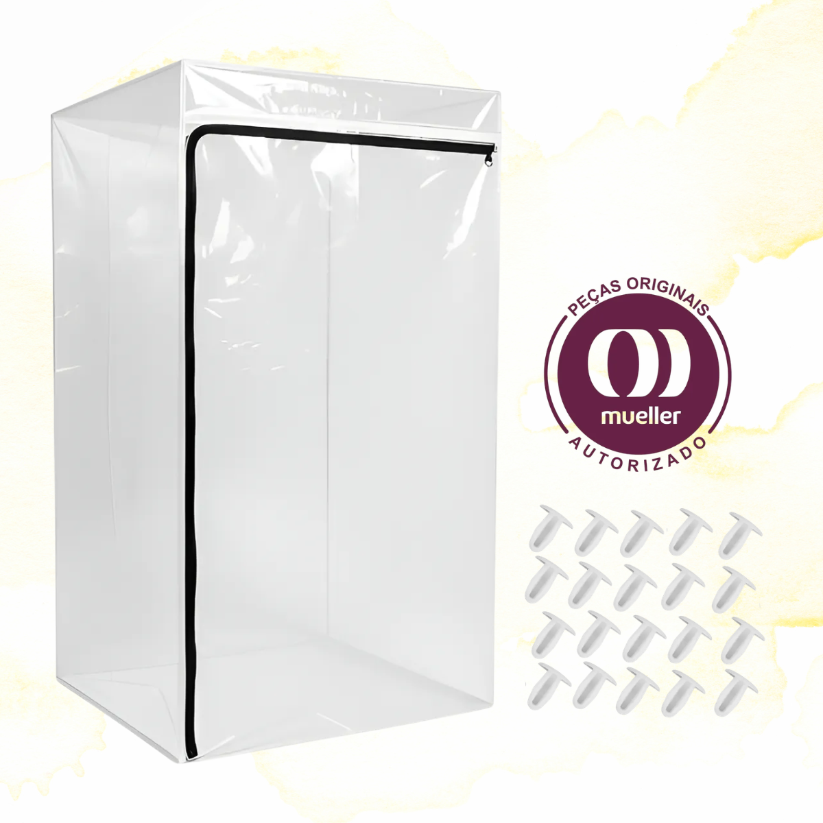O Saco Mueller 110000982 foi desenvolvido em plástico resistente e durável. Além disso possui zíper, facilitando a colocação e remoção das roupas.